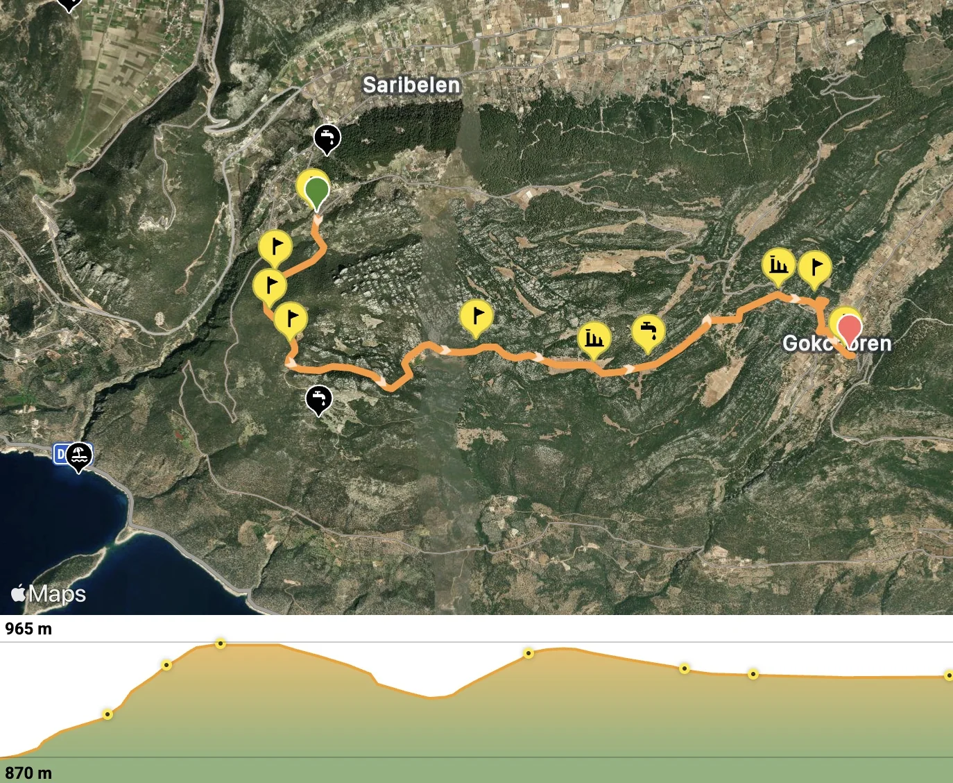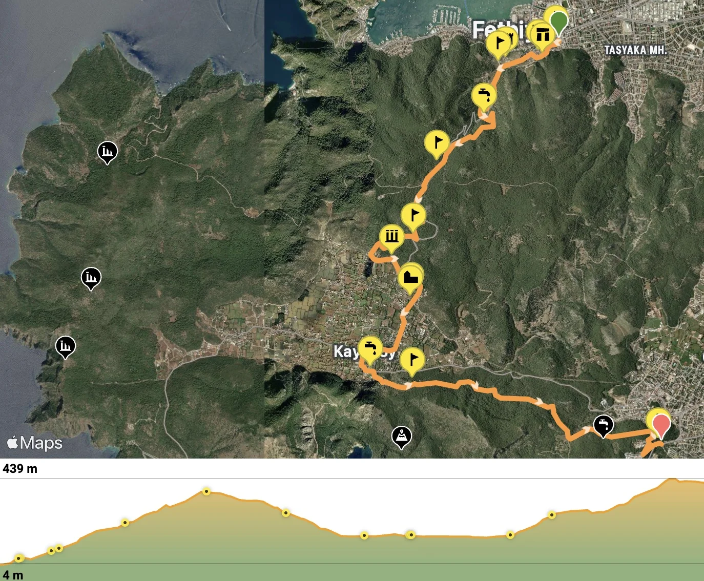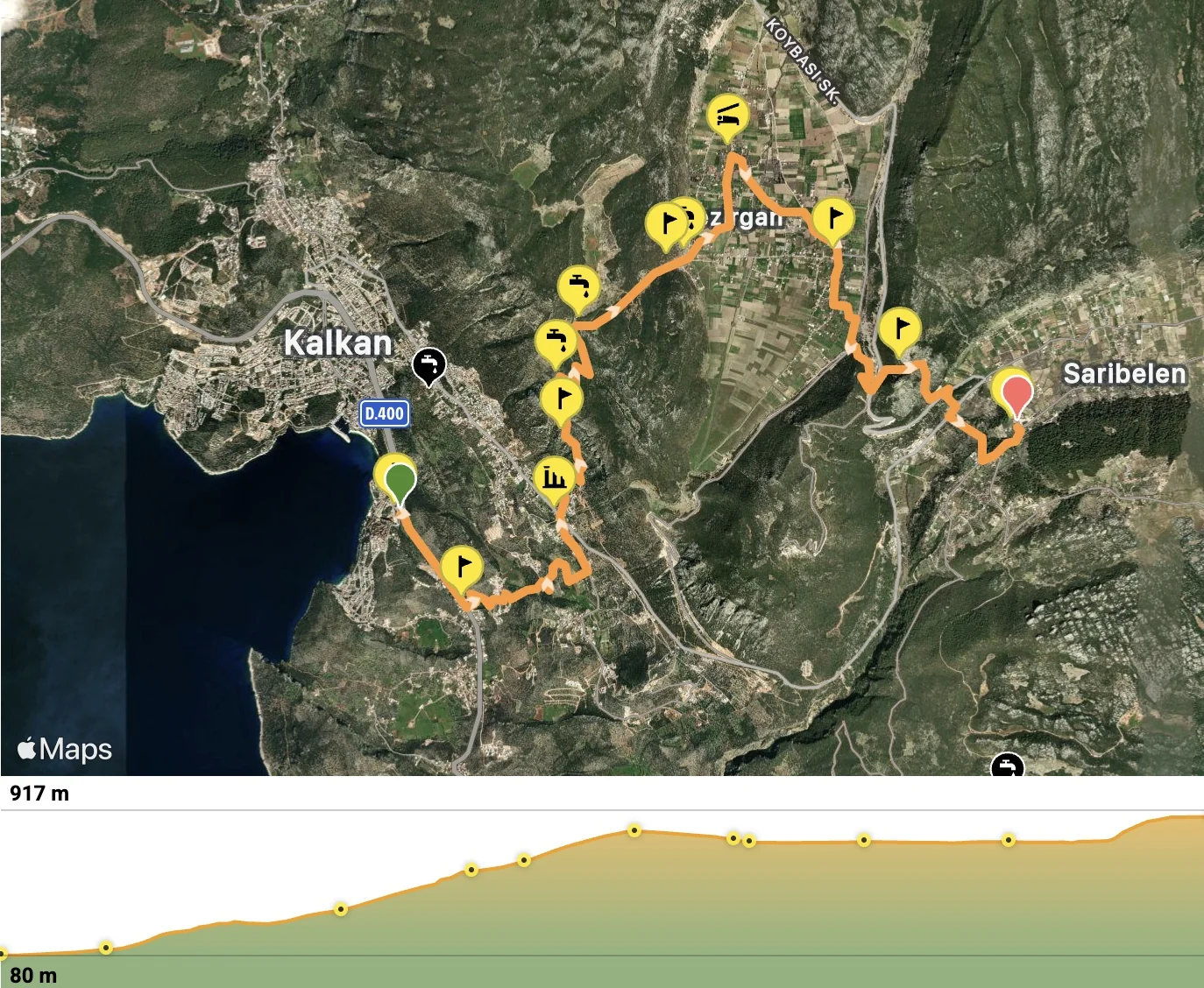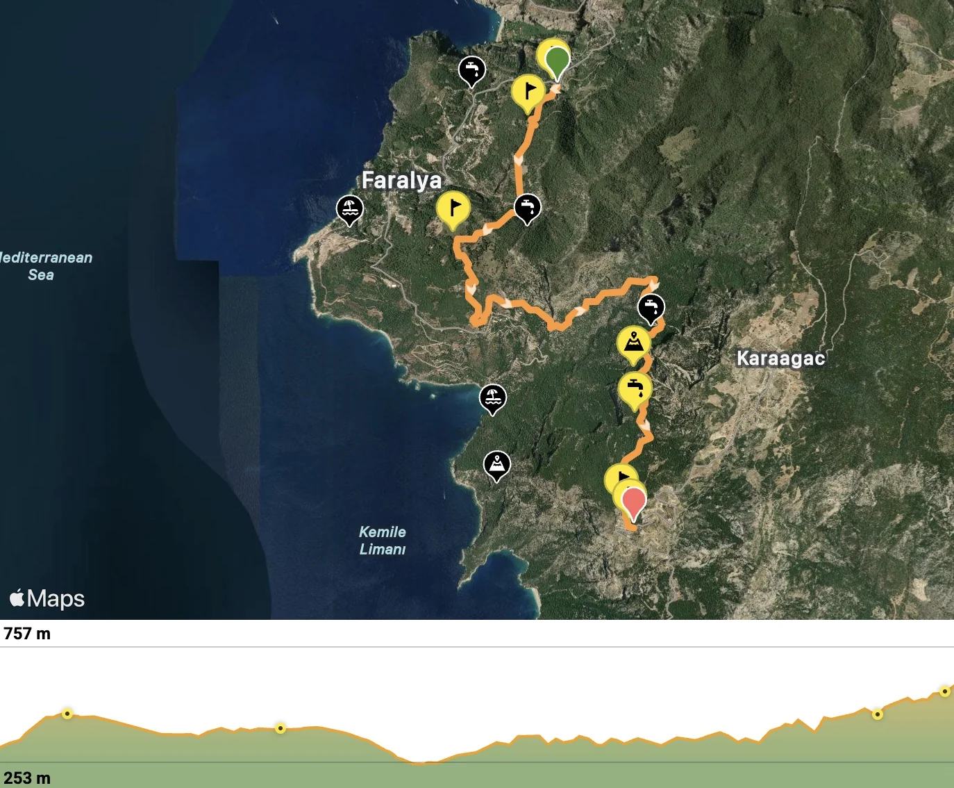 This itinerary combines some of the most varied landscapes on the western Lycian Way, from the coastal cliffs above Ölüdeniz and Faralya to the quieter inland routes around Sidyma and the high villages above Kalkan. The route includes a consistent mix of sea views, forest sections, and traditional rural settlements, rather than focusing on a single type of terrain.