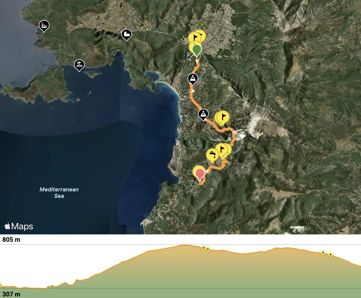 The first 5 km of this route will offer us breathtaking views. The ascent starts at 300 meters and continues up to 800 meters. The beauty of nature and the landscape during this climb is worth seeing. Afterwards, the trail continues with gentle descents and finishes at sea level.