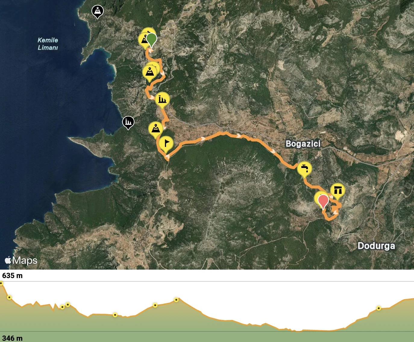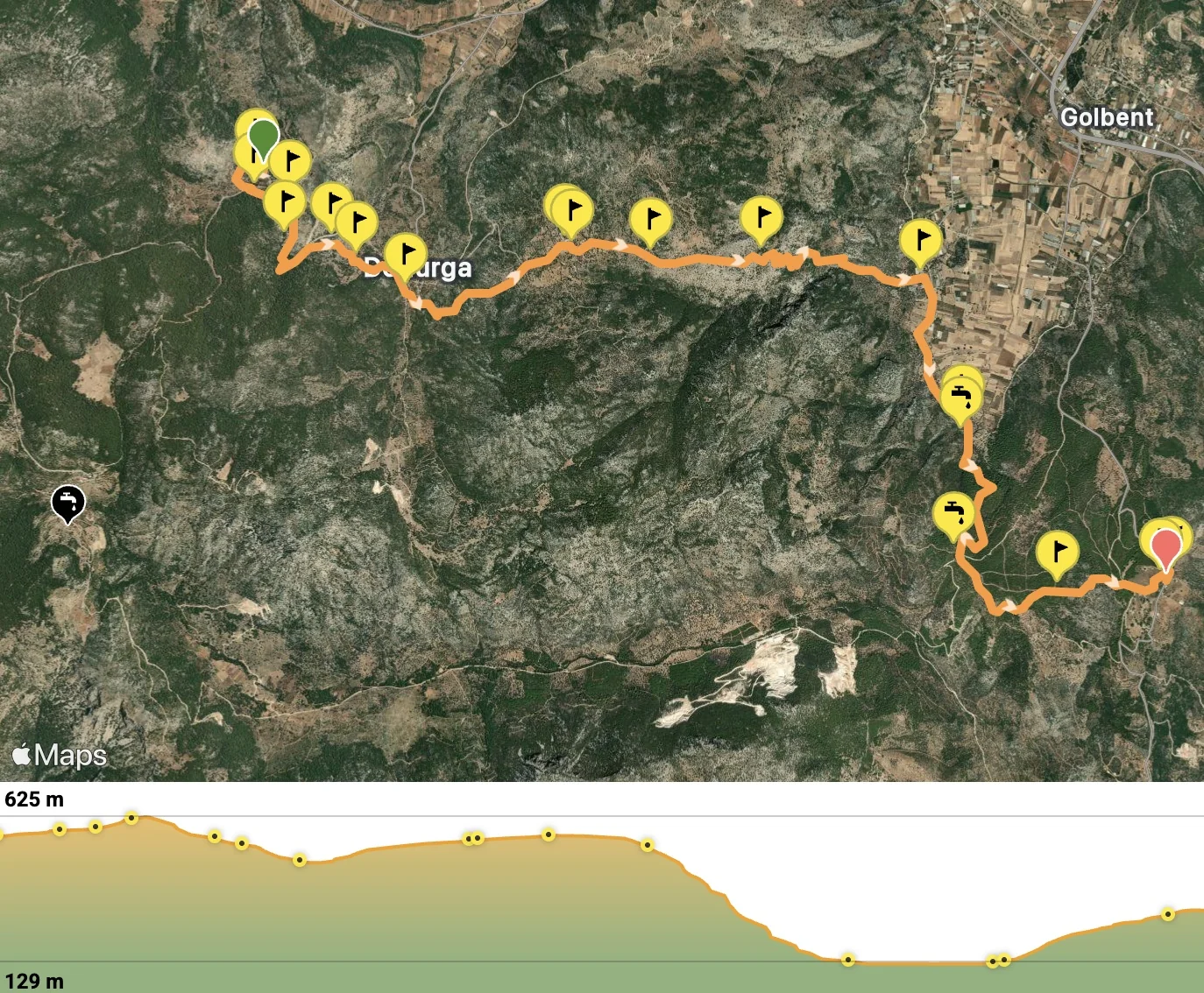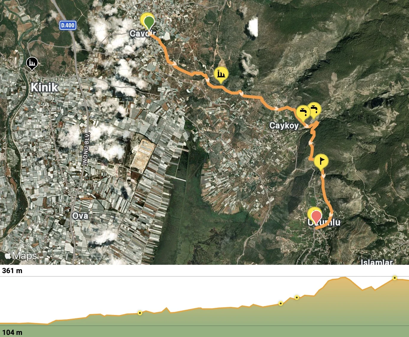 This section of the Lycian Way offers a calm and authentic walking experience, highlighting upland landscapes and village life rather than coastal views. The route is of moderate difficulty and follows an elevation range of 800–1,000 meters, consisting ofancient stone-paved paths, dirt trails, and occasional gravel village roads.
